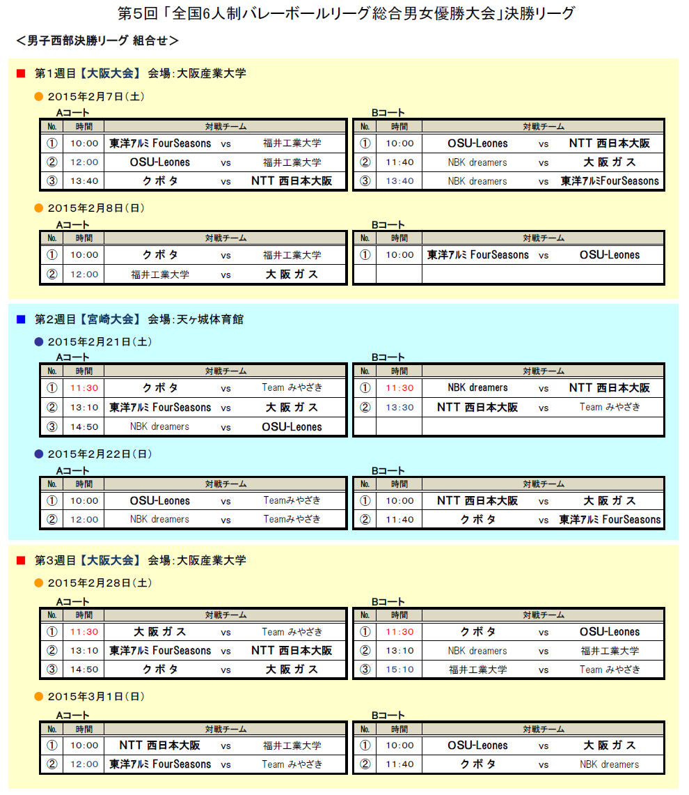 第5回 「全国6人制バレーボールリーグ総合男女優勝大会」決勝リーグ